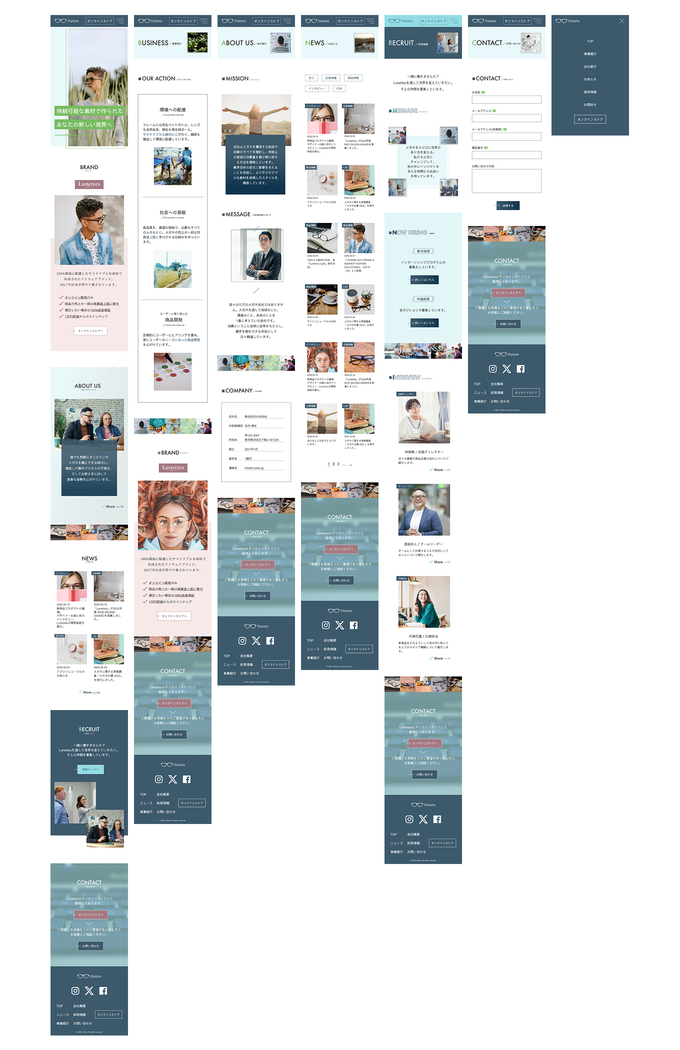 メガネ会社コーポレートサイト 2025 10/09 web-work メガネ会社コーポレートサイト 目的 メガネ会社のコーポレートサイト作成 ターゲット メガネ購入者、お取引先のビジネスパーソン デザイン 環境を意識した企業であるため、環境を意識した緑をアクセントカラーに設定し、落ち着いた印象かつ、現代風のくすみベースの色で作成 メガネの視線の先を意識しサイト導線を誘導 制作期間 4週間 使用ツール Figma sample figma PC版 SP版 web-work figma sample web-site